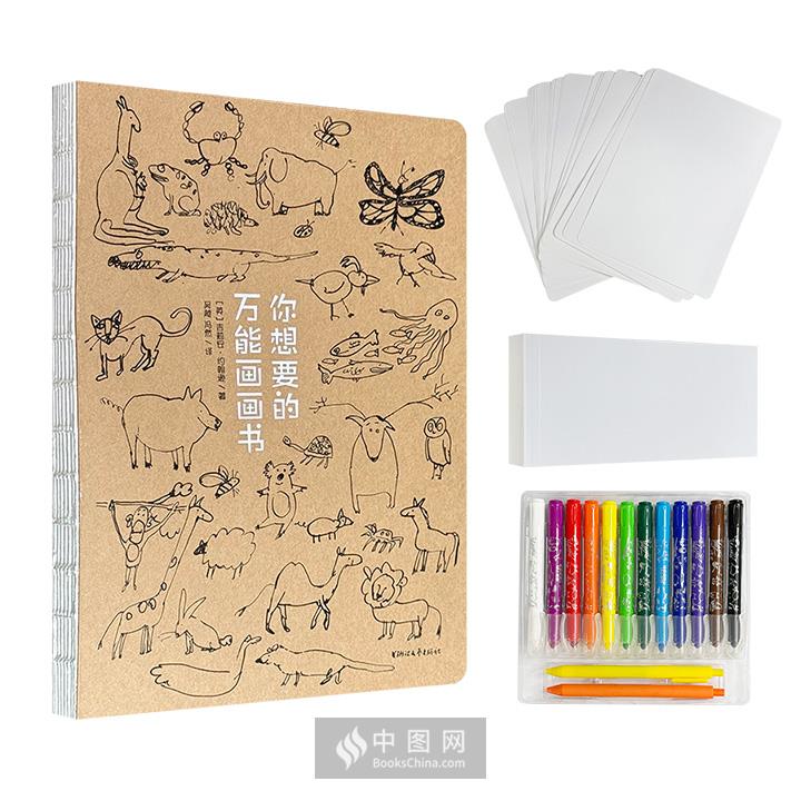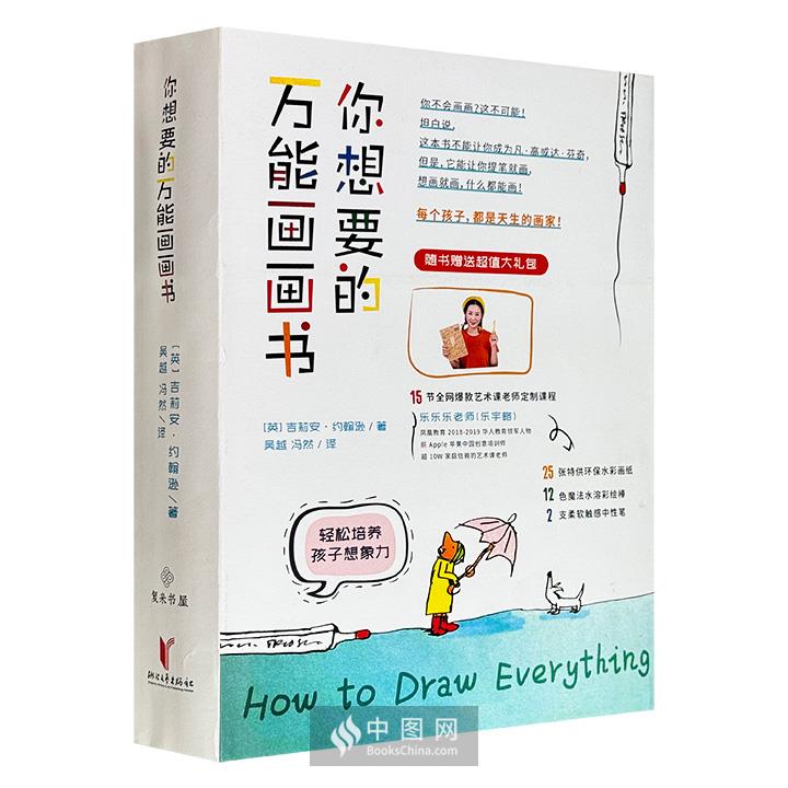 函套装《你想要的万能画画书》,1册图书+12色水溶彩绘棒+25张水彩画纸+288页便携绘画本+15节视频课。16开裸脊锁线,安全圆角设计,资深插画家吉莉安·约翰逊写给5-99岁读者的绘画入门书,从涂鸦到透视再到人物,这本书能让你想画就画,轻松成为画画高手。