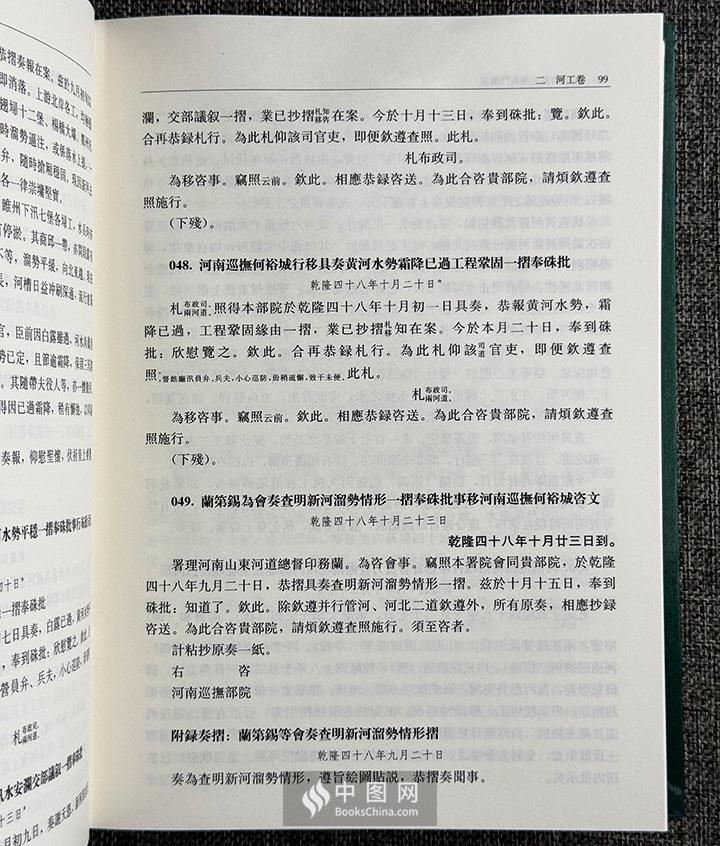 ★乾隆年间的河工档案内容主要是乾隆四十七年(1782年)至四十九年黄河河南和山东境内部分的汛情、水文、水灾、堤坝、治河经费等