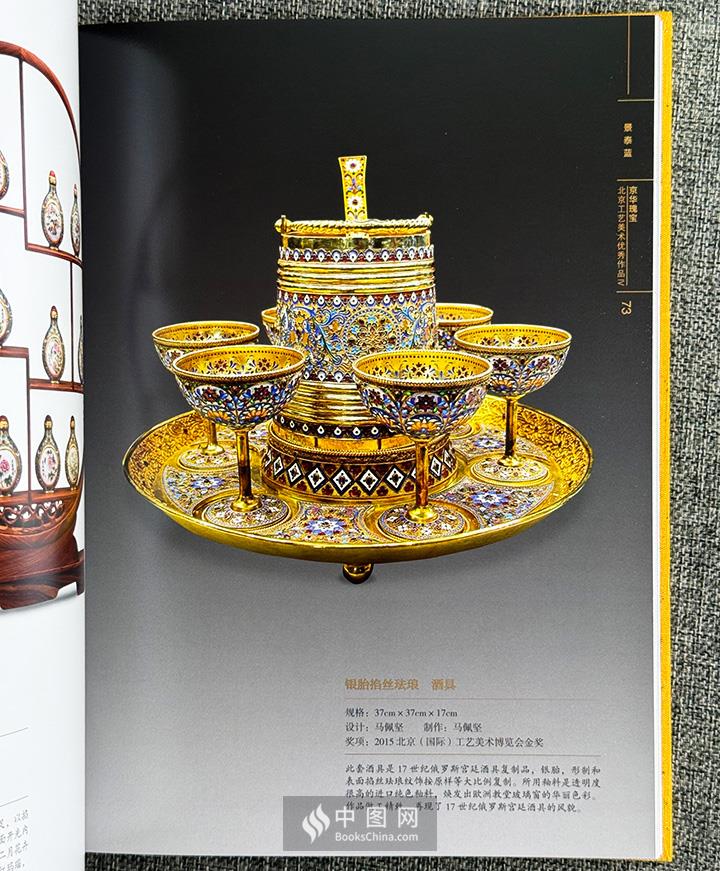 《京华瑰宝:工艺美术大师优秀作品》:记录了当代北京传统工艺美术行业国家级和北京市一级工艺美术大师的创作情况,囊括玉器、象牙雕刻、景泰蓝、雕漆、花丝镶嵌、雕塑、抽纱、内画、陶瓷、金漆镶嵌。