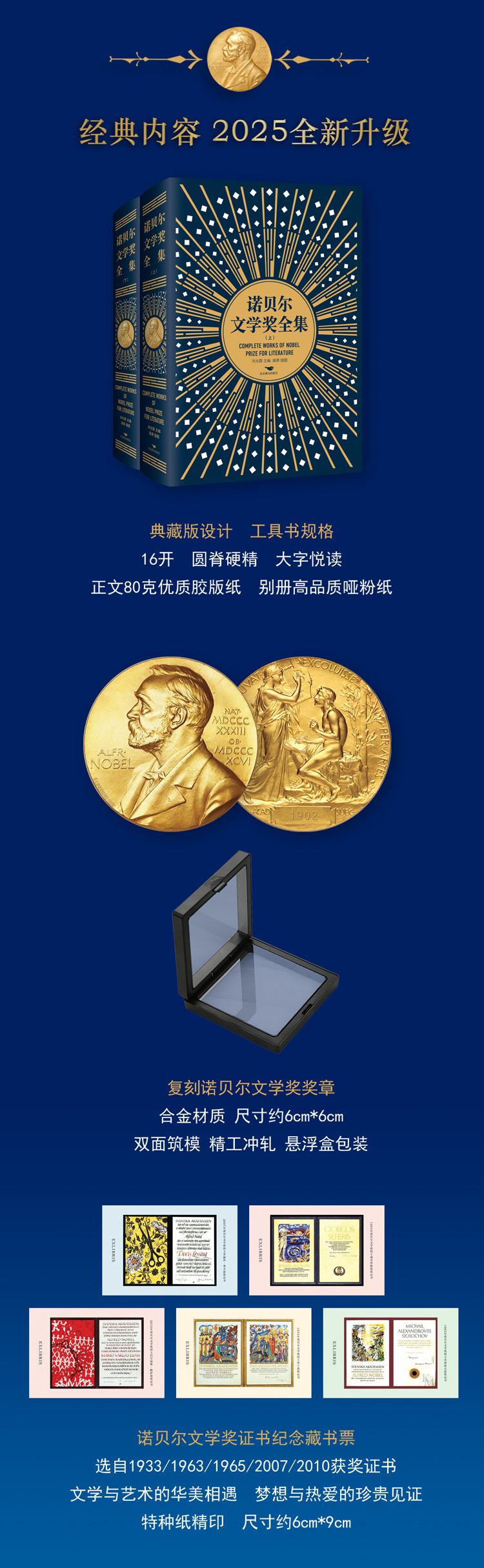 复刻版诺奖奖章+获奖证书藏书票×5+纪念别册!《诺贝尔文学奖全集1901-2024》精装全两册,192万余字,117届诺奖评选盛事+121位历届得主风采+100余位翻译家译笔,全景展现诺贝尔文学奖百年历程【本书由出版方代发,2个工作日内发货,需单独下单】