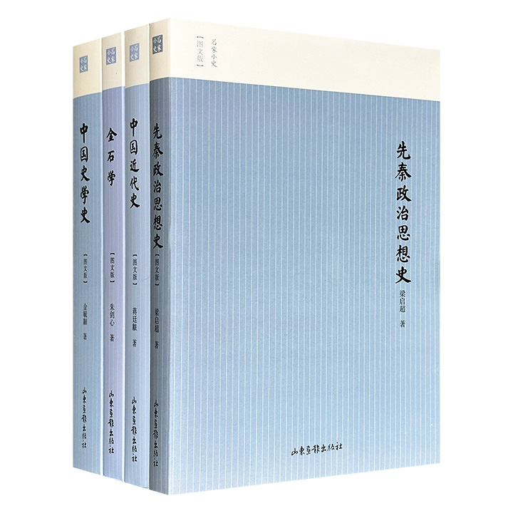 “名家小史·图文版”4册:梁启超《先秦政治思想史》+金毓黼《中国史学史》+蒋廷黻《中国近代史》+朱剑心《金石学》,这些著作均以民国初版本为底本,精心选配263幅插图,是当代读者走近文史经典的重要桥梁,具有不可替代的学术价值。
