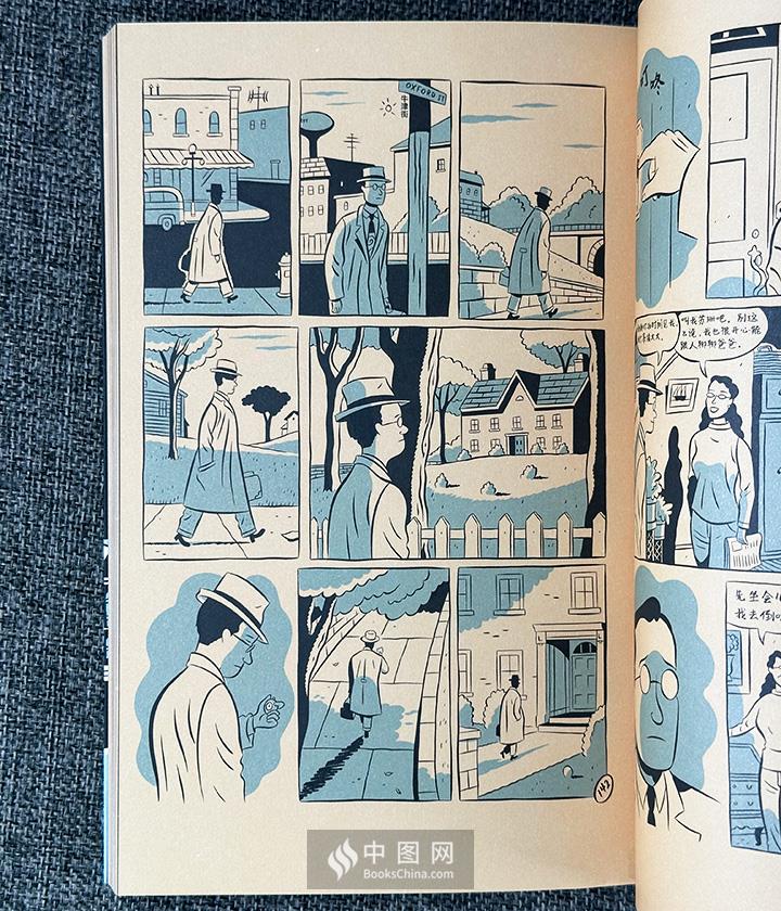 ★《纽约客》式经典漫画风格,极致的视觉美学表达:从容不迫的简单线条,富有质地的阴影处理,标志性的青黑双色涂色,复古的街道与建筑……辨识度超高!