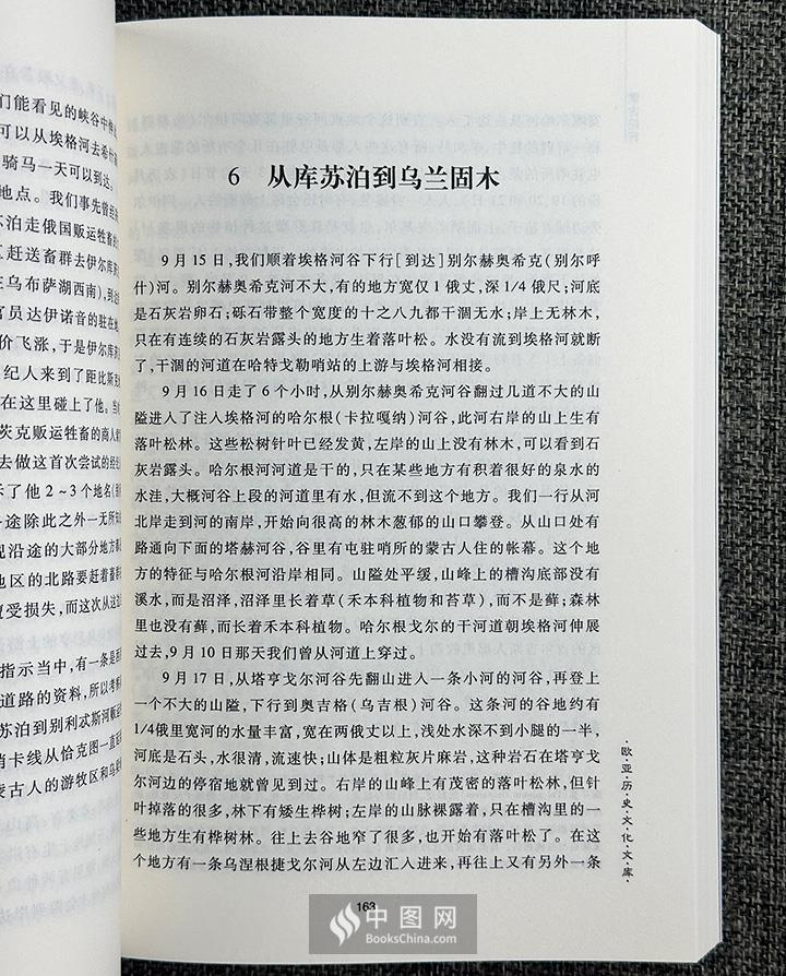 “欧亚历史文化文库”《蒙古纪行》,2011年出版,由俄罗斯旅行家波塔宁撰写,苏联地质学家奥布鲁切夫节选注释,是系统考察19世纪蒙古西北部及大兴安岭等地的考察日记,是了解该地区自然资源、地理环境、居民状况、商贸交往等不可多得的参考资料。